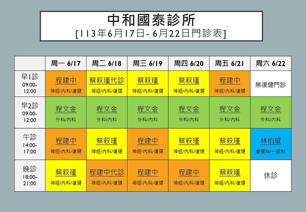 2024/06/17~22中和國泰門診異動公告